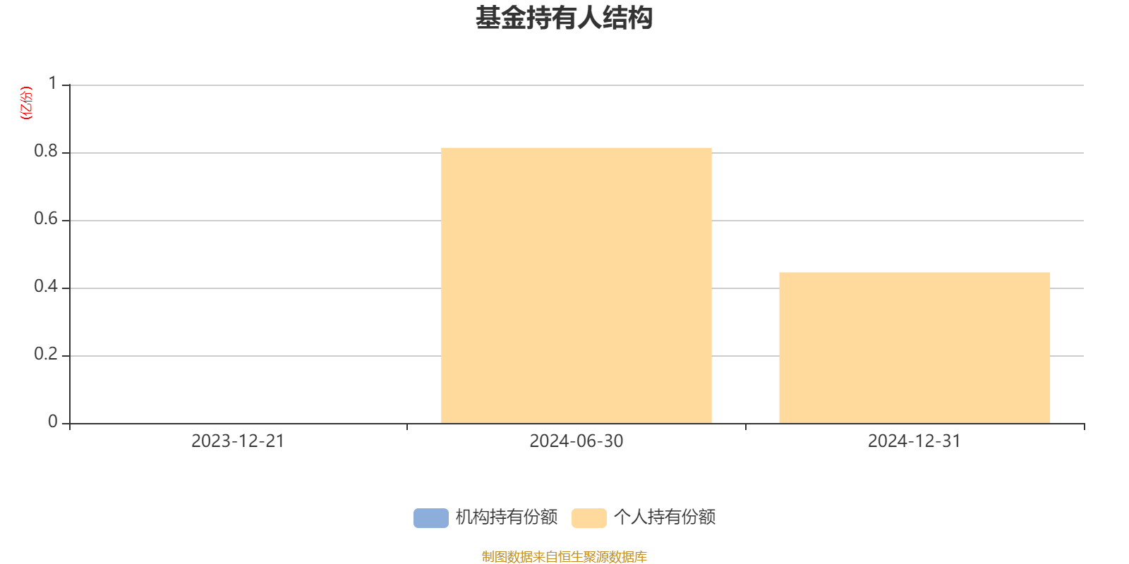 截至2024年12月31日,基金持有人共计611户,合计持有4446.16万份。其中管理人员工持有4.34万份,占比0.10%,个人投资者占比100.00%。
