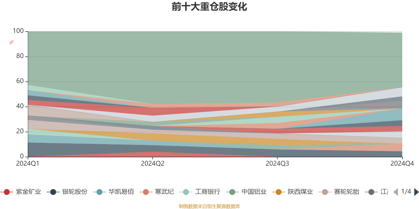 截至2024年末,基金十大重仓股分别是腾讯控股、中国神华、隆鑫通用、寒武纪、阿里巴巴-W、中国联通、赛轮轮胎、申能股份、银轮股份、招商银行。