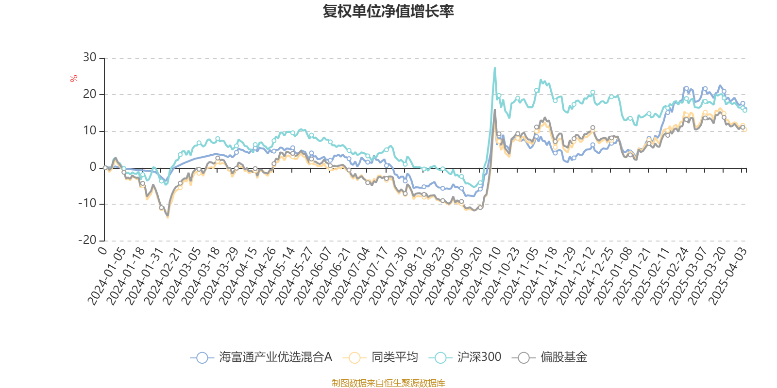 截至4月3日,海富通产业优选混合A近三个月复权单位净值增长率为11.31%,位于同类可比基金106/536;近半年复权单位净值增长率为4.99%,位于同类可比基金165/536;近一年复权单位净值增长率为10.66%,位于同类可比基金204/532。